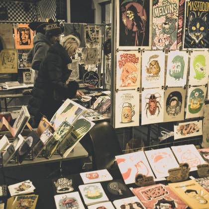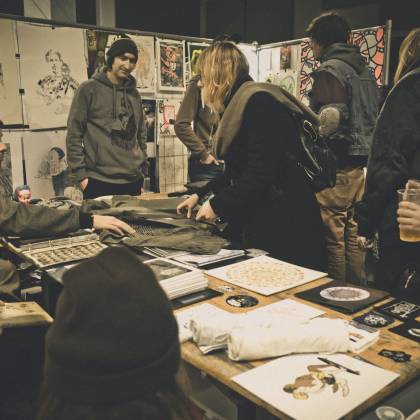 Thanks to our Italian crew, we got invited to join a bunch of gig poster artists, illustrators and other like minded DIY lovers for the 5th edition of Filler. This festival is organised by a crew of 10 sympathetic artists, musicians and enthusiasts called the Filler Brigade! During this 3 day festival, people could find a good variety of artists, gig poster designers as well as attend screen printing workshops or buy selected vinyls at the local core dealer. The Isolation Camp crew consisted of Hacki, Berni, Lukas, Marie, Ludschi, Andres, Agnese and Papa Fusti Gallo!