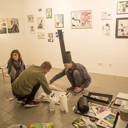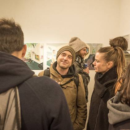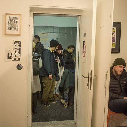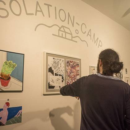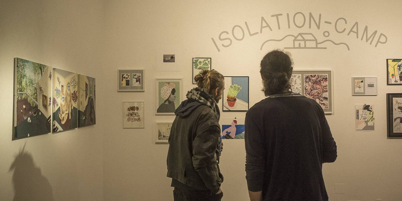 The Oxymoron gallery was a very fitting location for this networking event. Mostly the gallery entertains visually with young Street artists from all over Europe. They always manage to create a pleasant and including atmosphere. At the IsolationCampArtShowWien many campers with their friends and families came along to meet and to say hello to old friends.