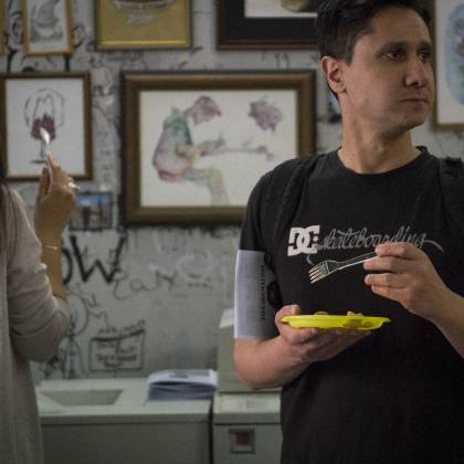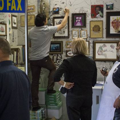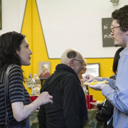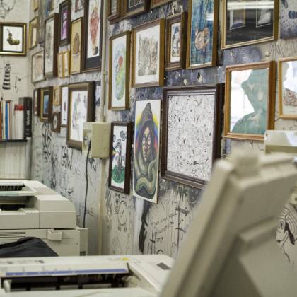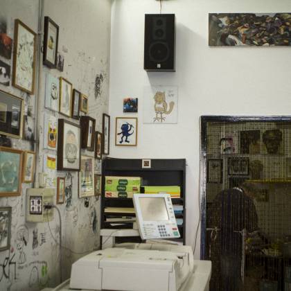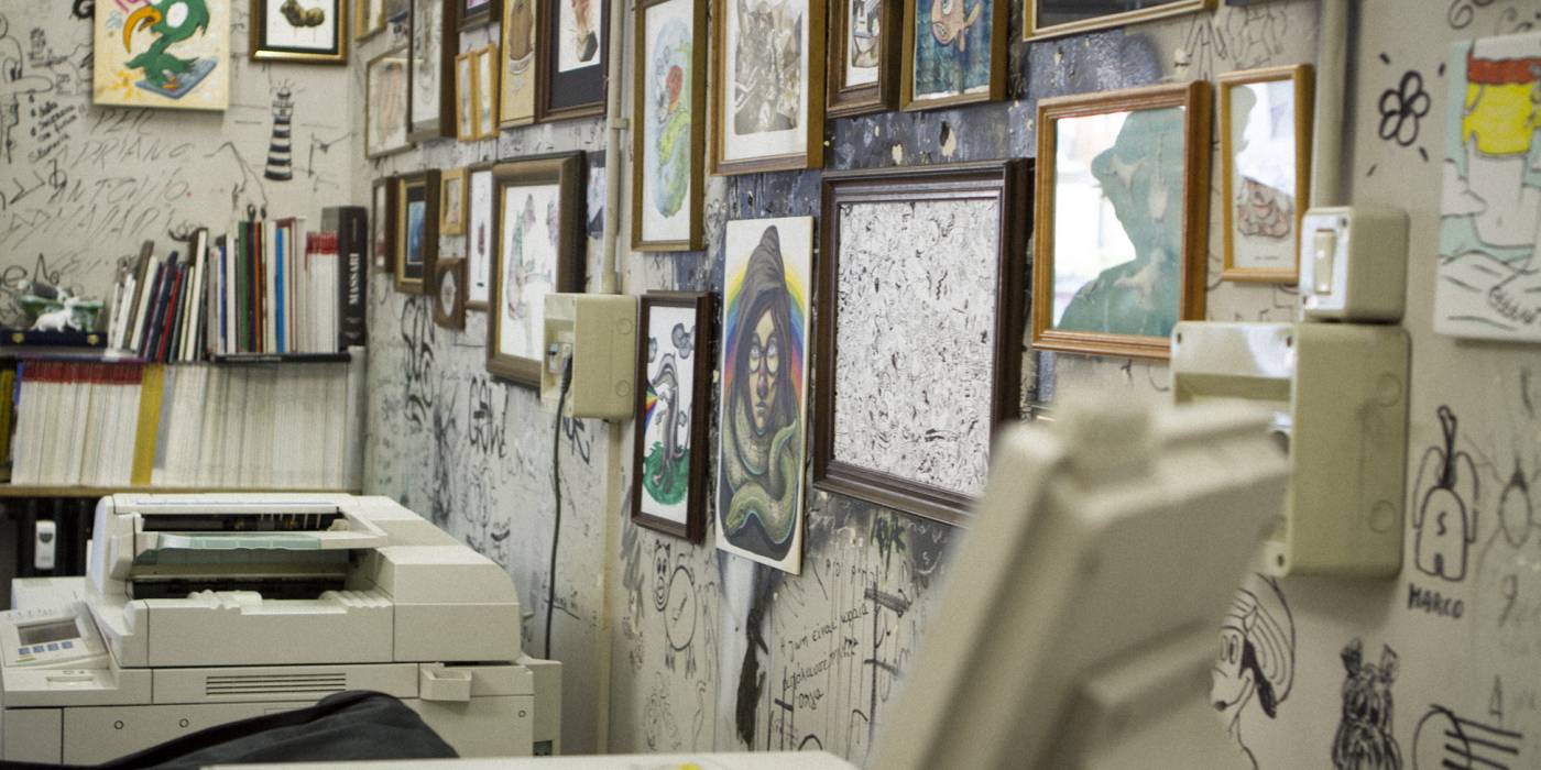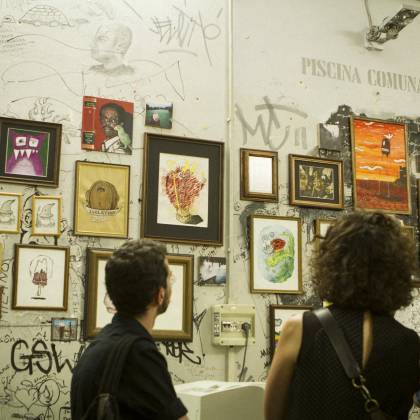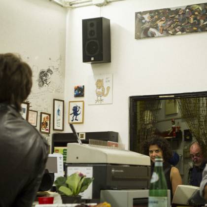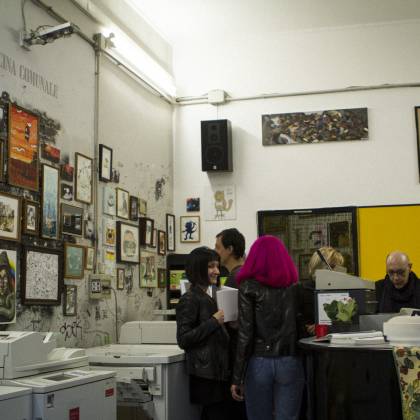 As our Italian Campers Gallo Sironi and Agnese Guido are pulling their strings for our movement in Milano, our first presentation was only a matter of time. This location called Piscina Comunale (public swmming pool) is special indeed! It’s a copy shop with an artistic approach. It’s located next to an art school and it’s owner Adriano’s goal to have a positive impact for students while they get their copies done. The atmosphere was warm and positive, including a prime red wine out of plastic cups and even a prosciutto spender! Next to touching base with the local scene, we got to know a future Camper from New Zealand, Andres Jensen. So yeah, it was totally worth it!